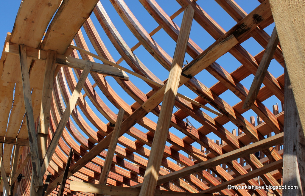 I�ve never seen a large sailboat being made like this one we found here in the Fethiye Marina. I was impressed by how the boat was taking shape. I wonder how long it takes to complete one like this. Does anyone know?